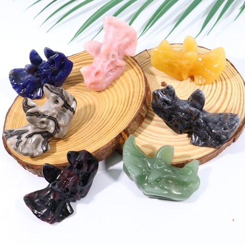 Calaveras de cristal natural Carfts de cristal espiritual estatuilla tallada a mano Yooperlite cabeza de dragón para regalo de niña