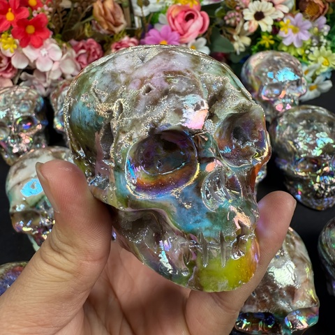 Gran oferta tallado a mano Yooperlite Dragon Skulls Crystal Crafts Heads para regalo de Halloween