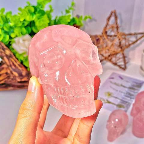 Venta al por mayor de cráneos de cuarzo rosa de cristal natural, tallas de cabeza, cráneos tallados a mano, artesanías de cristal para Decoración