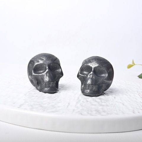 Cristal Natural Shungite calaveras cristal espiritual Carfts mano tallada estatuilla Shungite piedra injertos cabeza para regalo de Halloween