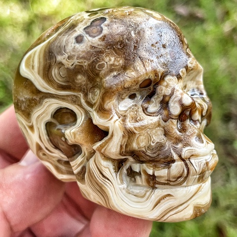 Impresionante estatua de calaveras de calcita ámbar grande-Calaveras de cristal de calcita de chocolate para decoración del hogar, Ideal para Halloween