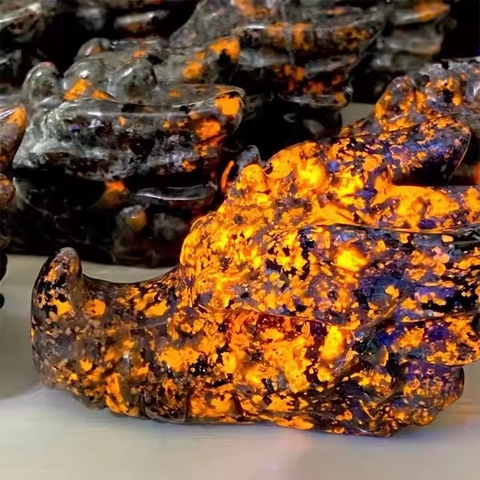 Gran oferta, calaveras grabadas UV, artesanías de cristal, piedras curativas, calaveras de dinosaurio talladas, Colección antigua Yooperlite
