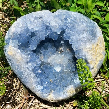 Bán nóng tự nhiên màu xanh celestite geode tinh thể chữa bệnh đá cụm pha lê trái tim chạm khắc cho mục đích thủ công trang trí